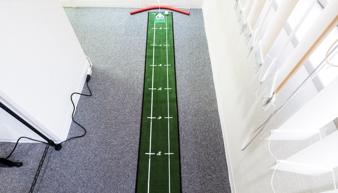 週末のゴルフに向けて、休憩時間にパット練習はいかがですか。スコアが上がること間違いなし。 |